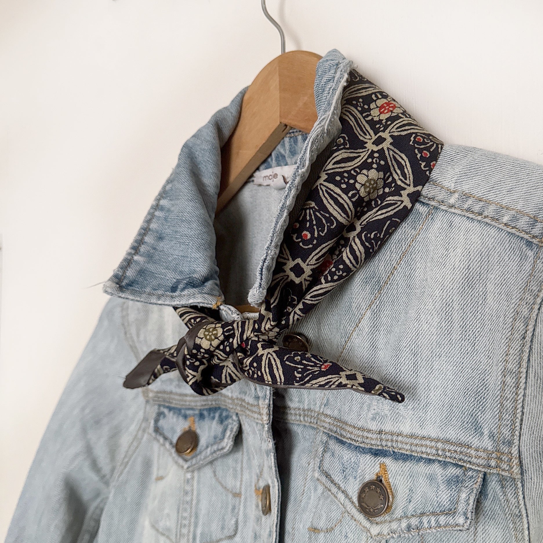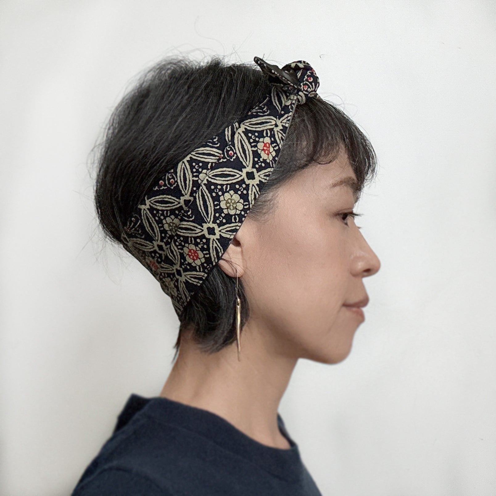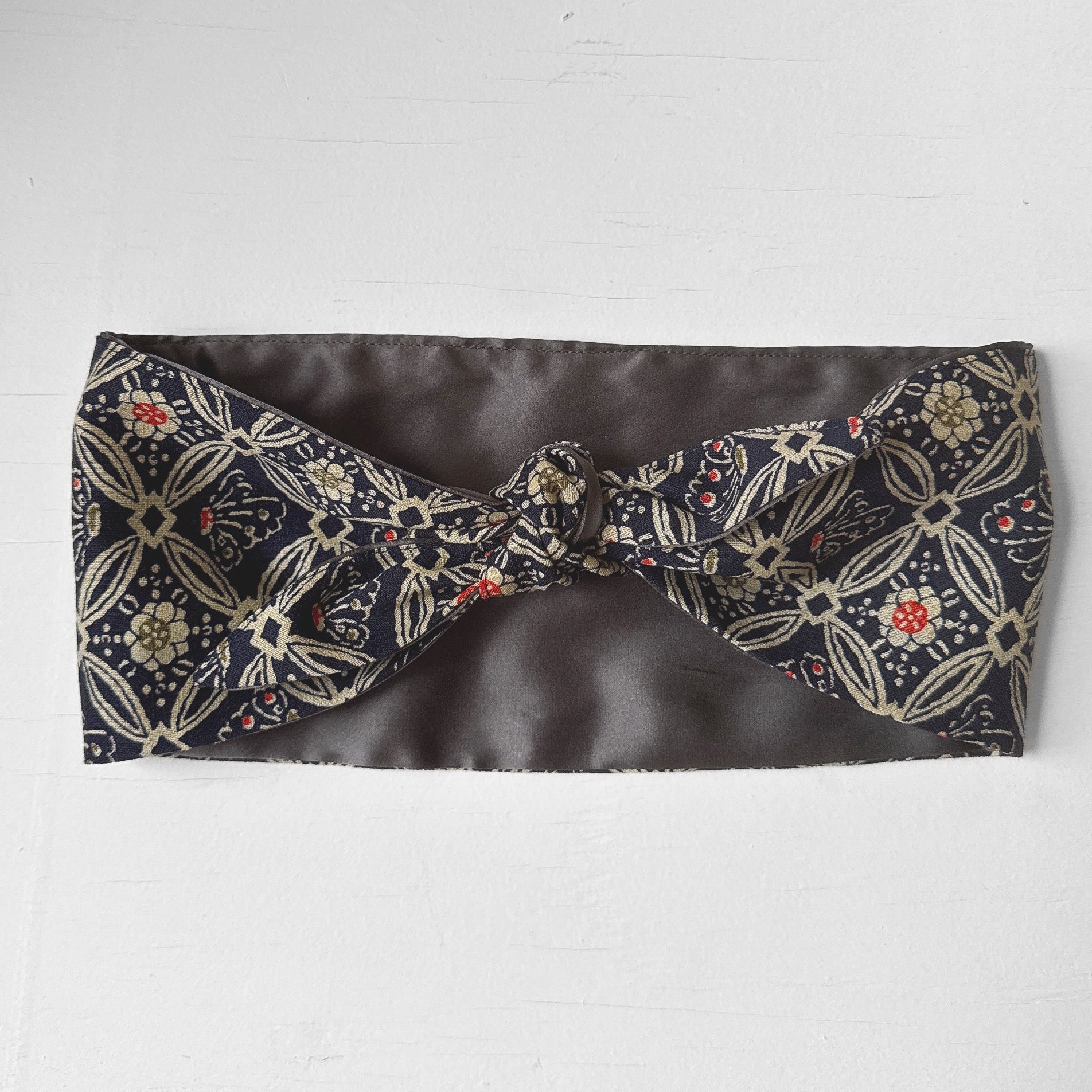 Hand made Reversible hair scarf. Vintage wool kimono fabric (very dark Navy)and Silver Silk (silk makes slippery for some of the hair type)