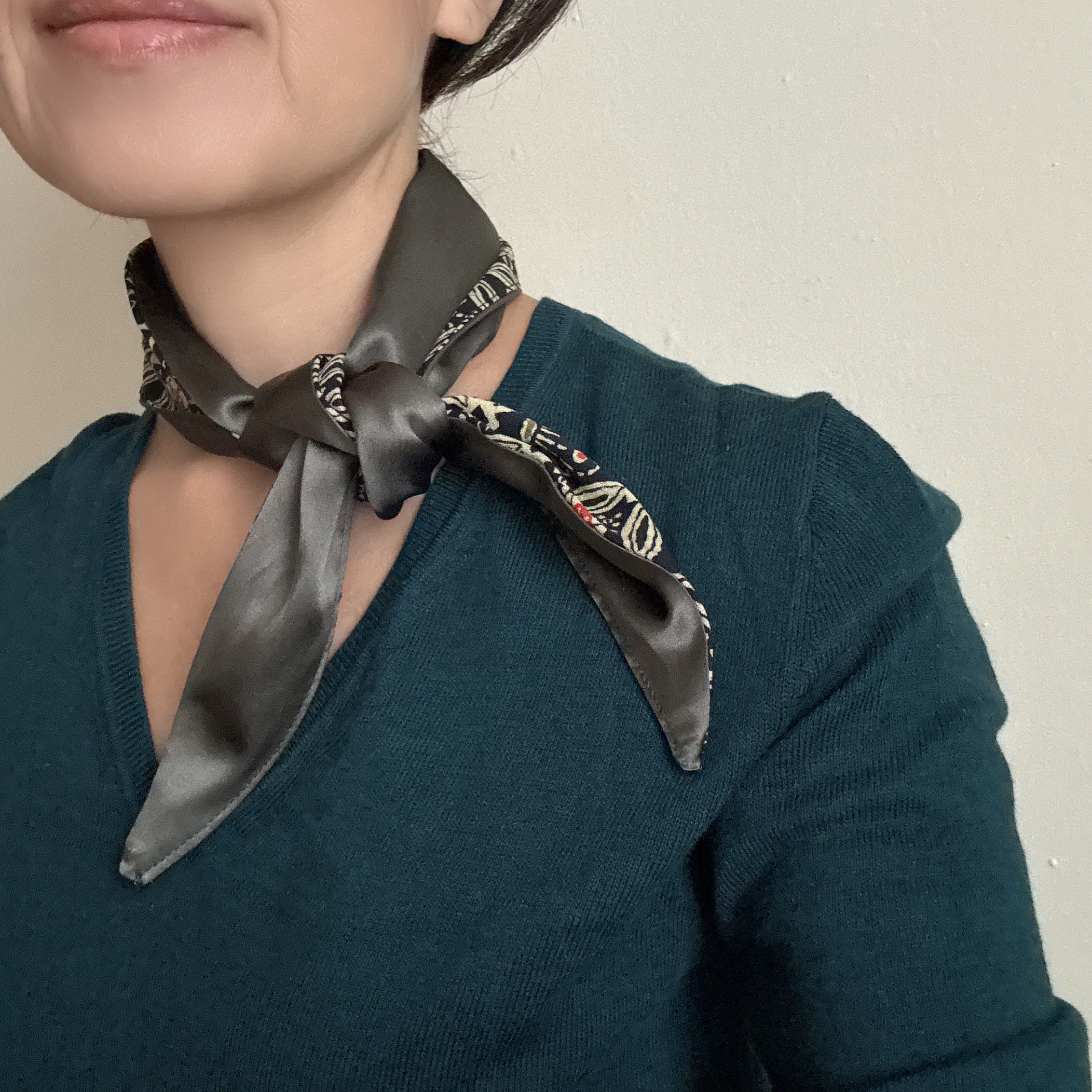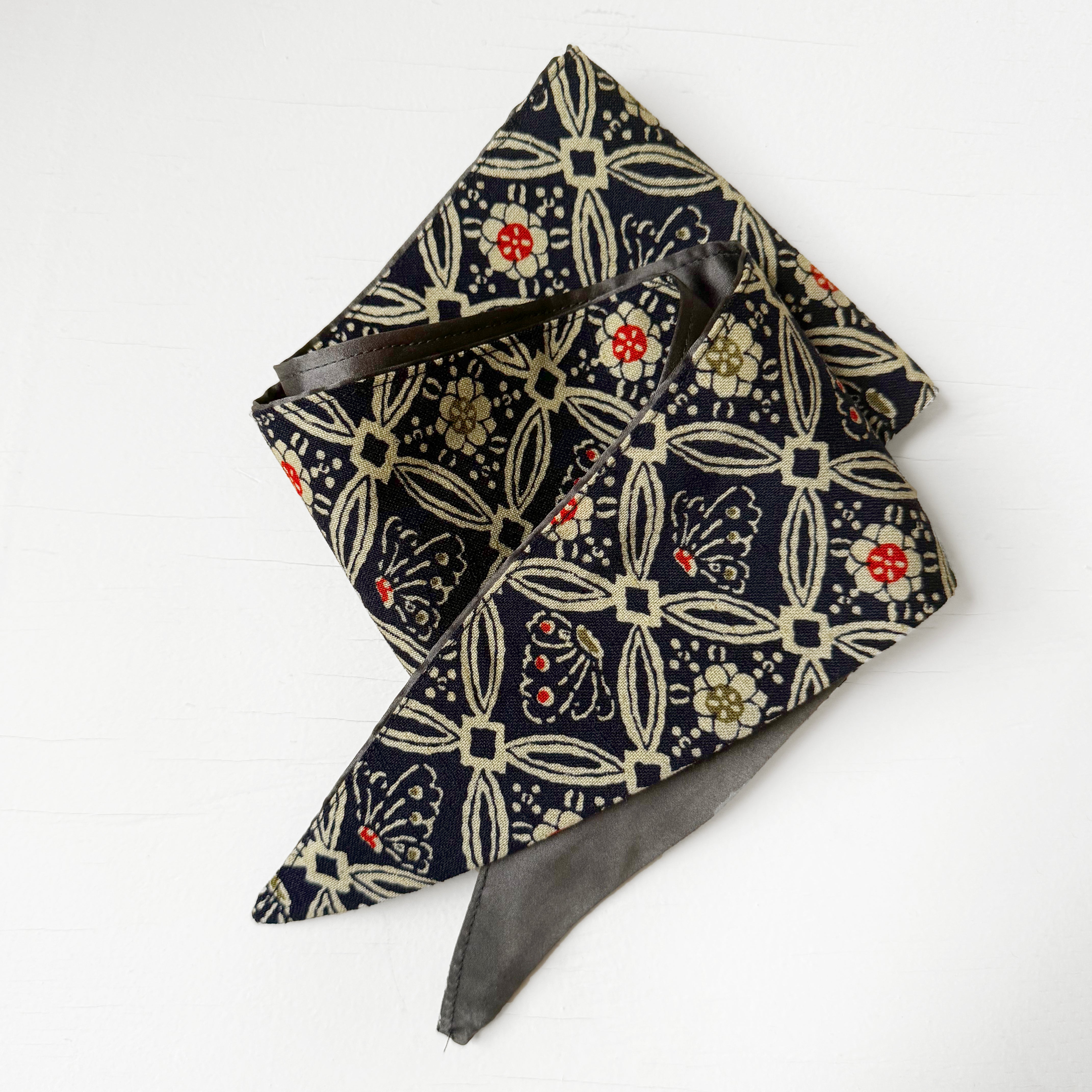 Reversible headscarf: Vintage Navy wool kimono fabric, gray silk lining tie yourself scarf