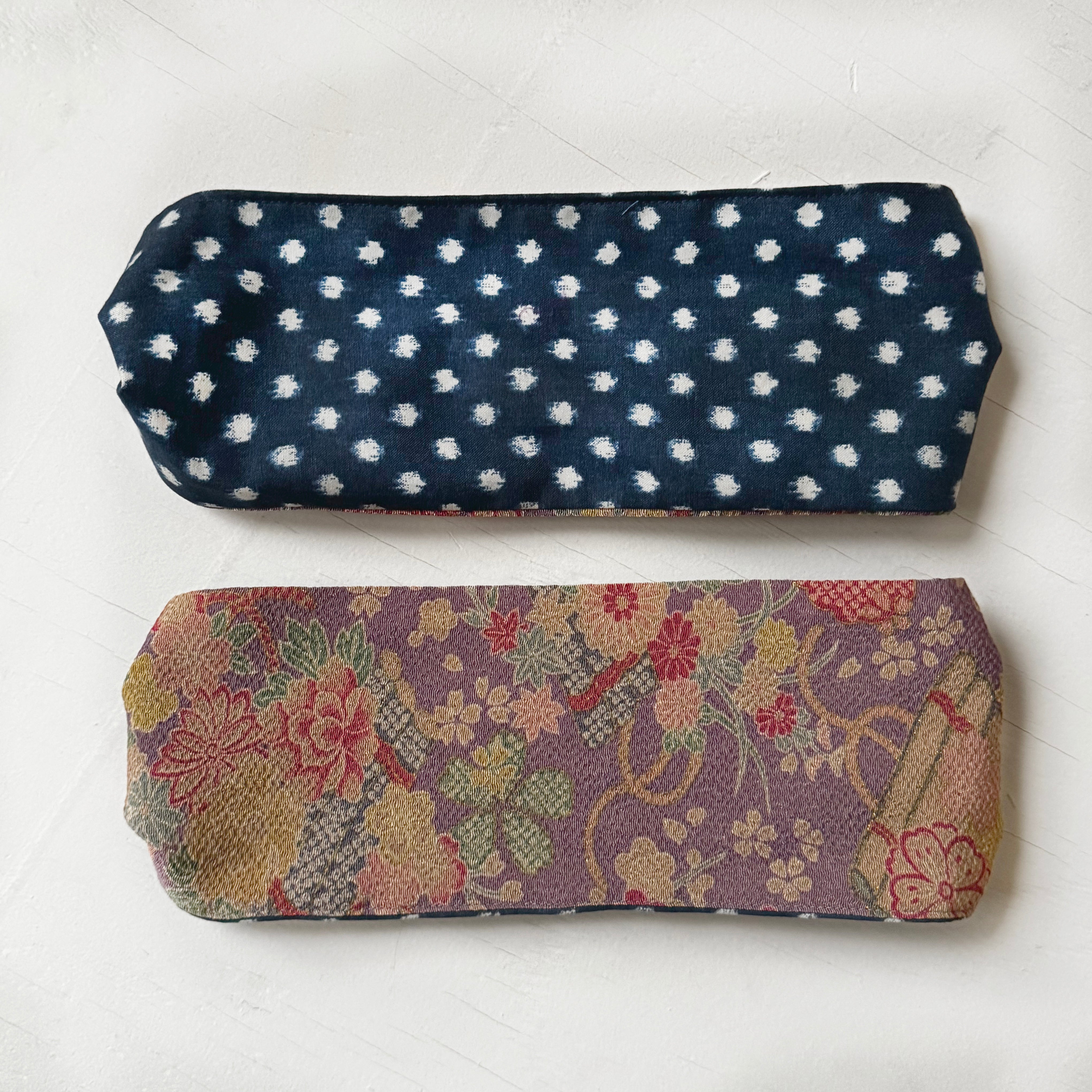 Hand made Reversible Headband. Japanese poly chirimen fabric with cotton polkadots lining
